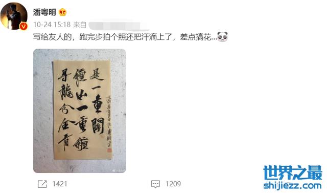 除了在拍戏上敬业负责,潘粤明在生活中也是极其认真。在社交平台上,他频繁更新自己的画画作品,还开创了自己与网民互动的“和潘粤明一起画画”活动。在与粉丝分享着自己的日常生活与拍戏琐碎里,也看得出来他平时也爱跑步运动,严格管理着自己的身材。