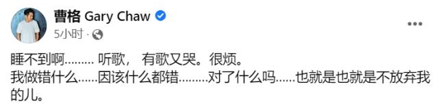 吴速玲借此发泄完情绪,另一边的曹格又有所动向,连续更新数条动态,刚开始口吻还尽显低落,几个小时后却突然变得情绪亢奋,他用英文写下“被抛弃了,活得最辛苦的人,往往是最需要爱的人。”