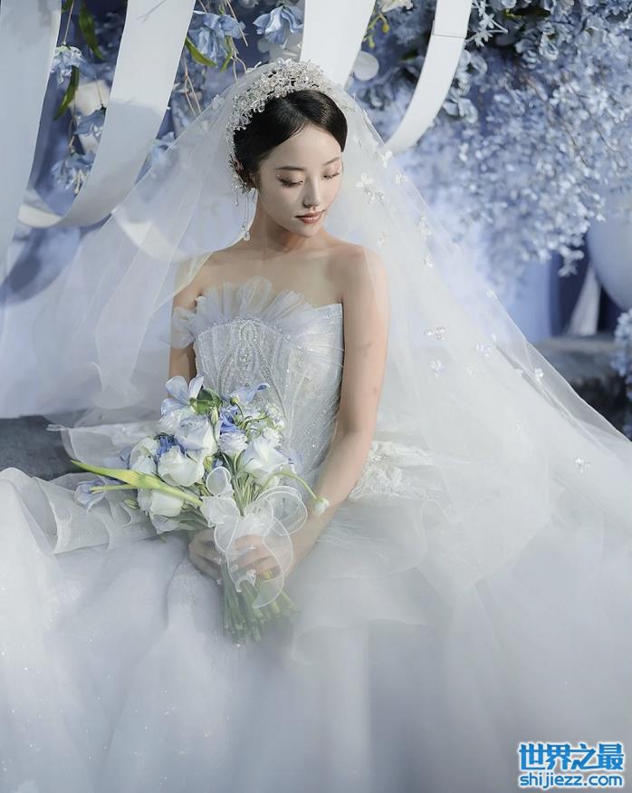 身披圣洁白纱的王艺洁更是表现得落落大方,一旁的老公也是身姿挺拔,气质不凡,两人并肩而立的画面着实相当养眼,整个仪式现场的布设也是颇具水准,蓝色与白色交相呼应,搭配上精致绚烂的花艺装饰,巧妙营造出浪漫唯美的氛围感。