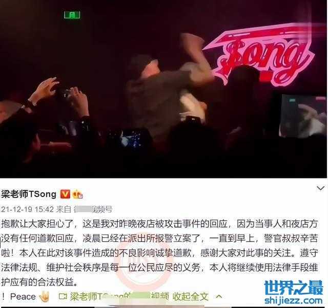 在我们国内,演出现场也经常发生意外。说唱歌手梁老师就曾在某酒吧演出的时候,被人从后面突然推打。事发突然,正在演出的梁老师也是一脸懵逼,随后他发文表示对于自己演出时被袭击一事已经报警,也对该事件造成的不良影响进行道歉,并希望警方能够进一步调查此事。