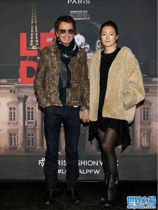 一起坐在头排的,还有法国老公米歇尔。两个人一个57岁一个74岁,面部保养都很令人佩服。