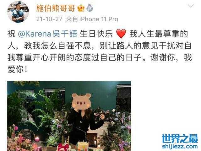 大家都以为是她倒贴豪门,没想到今年施伯雄微博号曝光后才发现,那个一直追着跑的角色是男方。他还说吴千语教会他很多事,是他最尊敬的人。