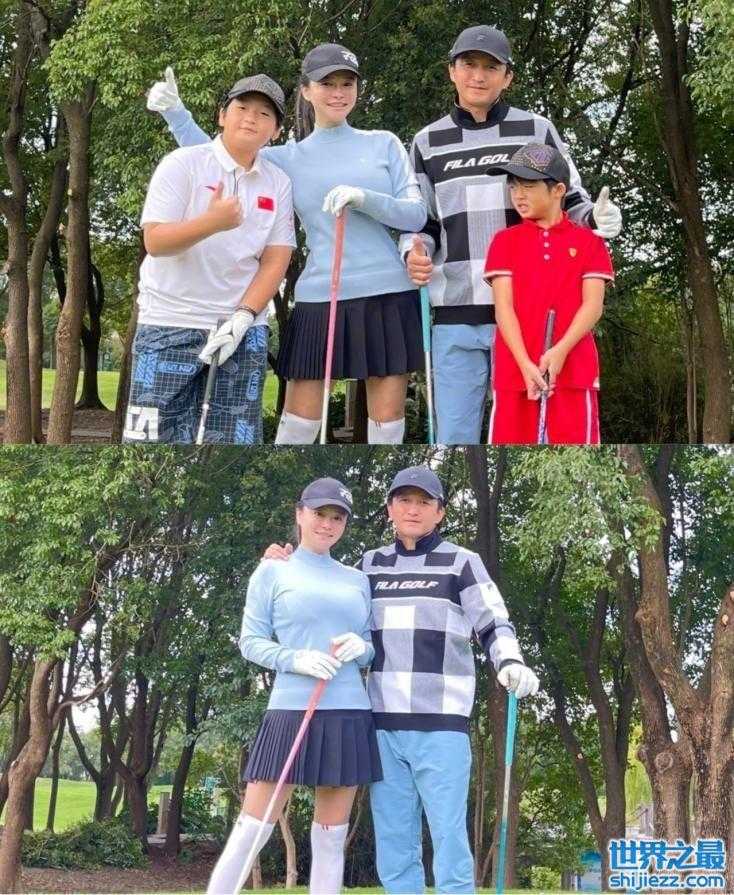 冉莹颖一家五口打高尔夫球!和老公搂肩好恩爱,穿紧身衣身材好 ...