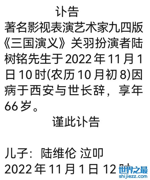 演员陆树铭心梗去世,儿子陆维伦发讣告,“孙权”吴晓东、张艺谋悼念 ...