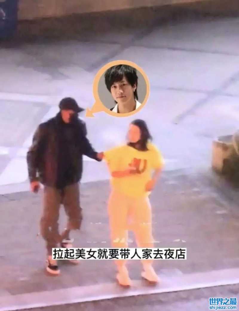 来到夜店门口,何润东慢悠悠的来到了一位身穿黄色上衣的异性身边,当时这位女孩子在玩手机,何润东就拉了女孩的衣服。毕竟是男生,女孩也是被他拉得往他得方向靠了一下,应该是想让她和自己一起去夜店。