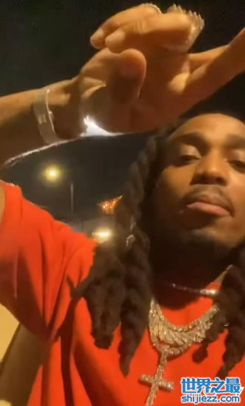 而且当天takeoff的搭档Quavo也与他一同现身了此次的聚会,穿着红色衣服的他,最后也被拍到了出现在事故现场的画面。