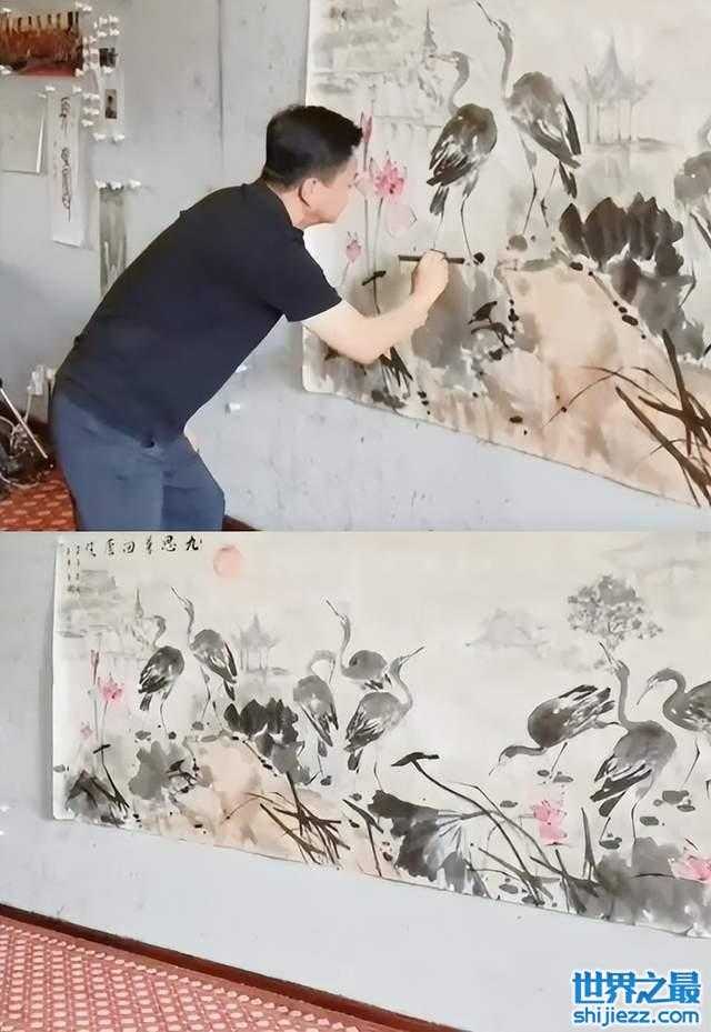 无独有偶,朱军的夫人谭梅也在自己的社交平台晒出朱军作画的视频。只见朱军拿起画笔,在墙上贴的画纸上细致描摹,甚至到了忘我的地步,挥毫泼墨之间一幅大作就呈现在了我们眼前。