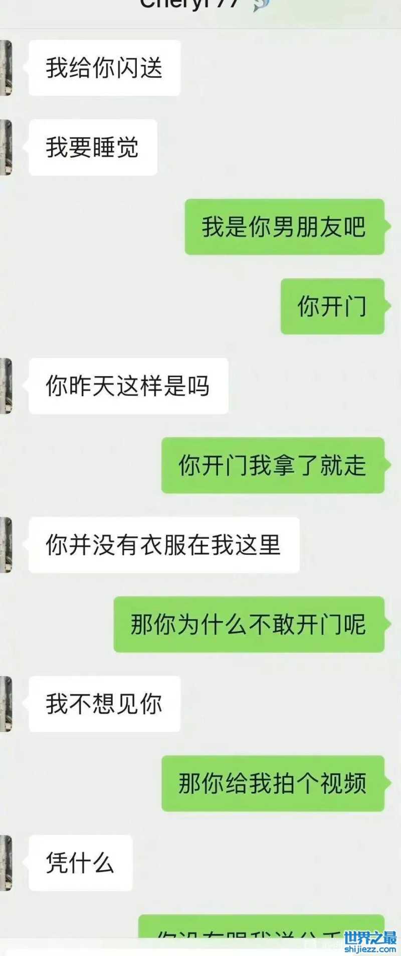 从聊天记录来看,该网友让他女朋友开门,对方不开,并表示没有衣服在这里,还说不想见他。