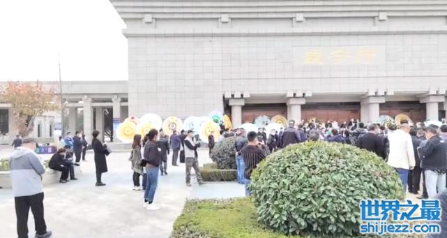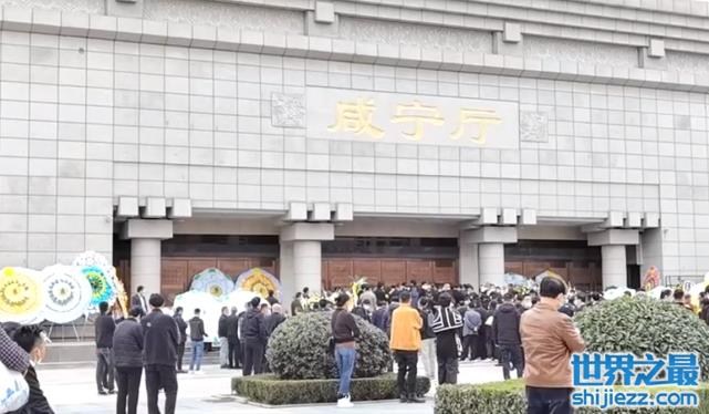 可以看到告别仪式还未正式开始,殡仪馆门口就已经聚集了各界人士,有媒体还来到殡仪馆门口直播,大家纷纷穿着黑衣佩戴着白花,悲伤等待着告别仪式开始。