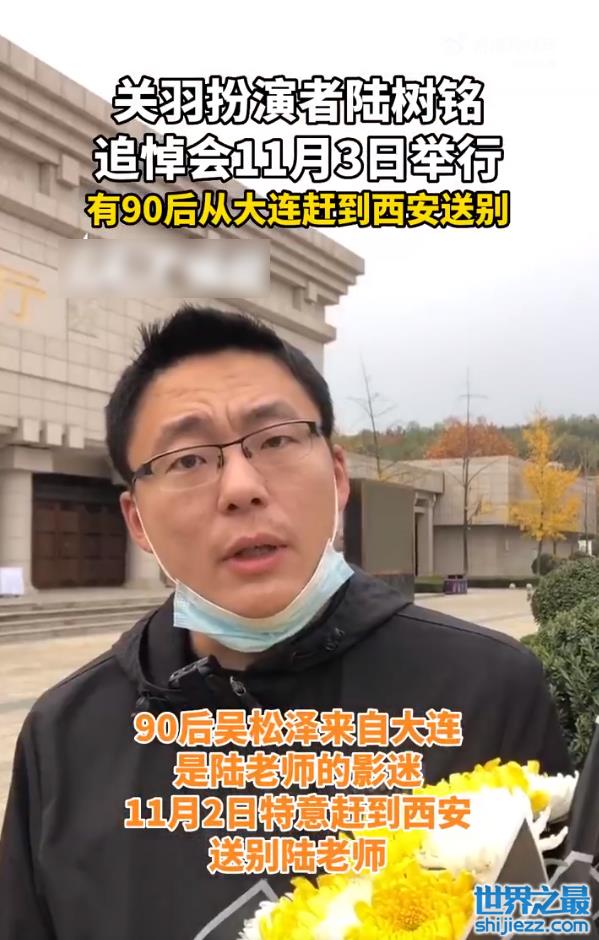 11月3日,陆树铭老师的追悼会在10点举行,不少陆树铭老师的影迷从各地赶往西安参加他的追悼仪式,在殡仪馆门口,亲友、同事及影迷献上鲜花送别,其中有一些还是90后,他们是看着陆树铭老师的戏长大的,心中难以抑制悲痛,隐忍着哭泣。