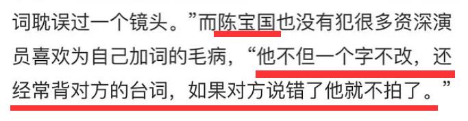 真正敬业的老演员,哪怕上了年纪都坚持提前背好词。同样年过花甲的陈宝国拍戏时私下就将台词、走位功课做好,在片场完全不用拿剧本顺畅演完,甚至还经常背下对方的台词,这才是真敬业。