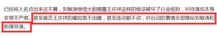 紧接着刘敏涛又曝猛料,说王庆祥在没有嘴部特写的时候直接不说话。甚至在戏还未杀青时就把剧本寄回北京了,在片场到处借剧本看。