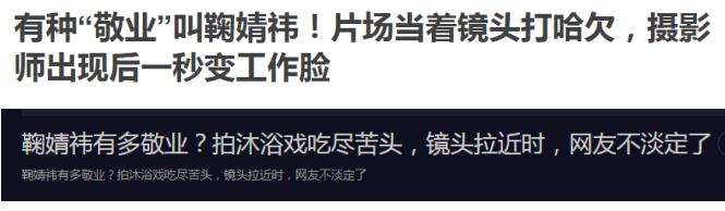 为了给自己塑造人设,鞠婧祎有段时间满屏敬业吹嘘通稿,但每条都让人眉头紧皱。什么鞠婧祎拍沐浴戏是真泡澡!吃尽苦头!还有她拍广告时上一秒还在打哈欠,下一秒就变脸投入工作,这种都能夸成:啊!有种敬业叫“鞠婧祎”!