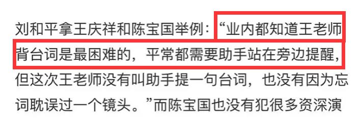其实王庆祥背不下来台词的事情,业内皆知,曾经与他合作过《北平无战事》的刘和平也盖章过,甚至还为他没有因为忘词耽误镜头,而感到欣慰。