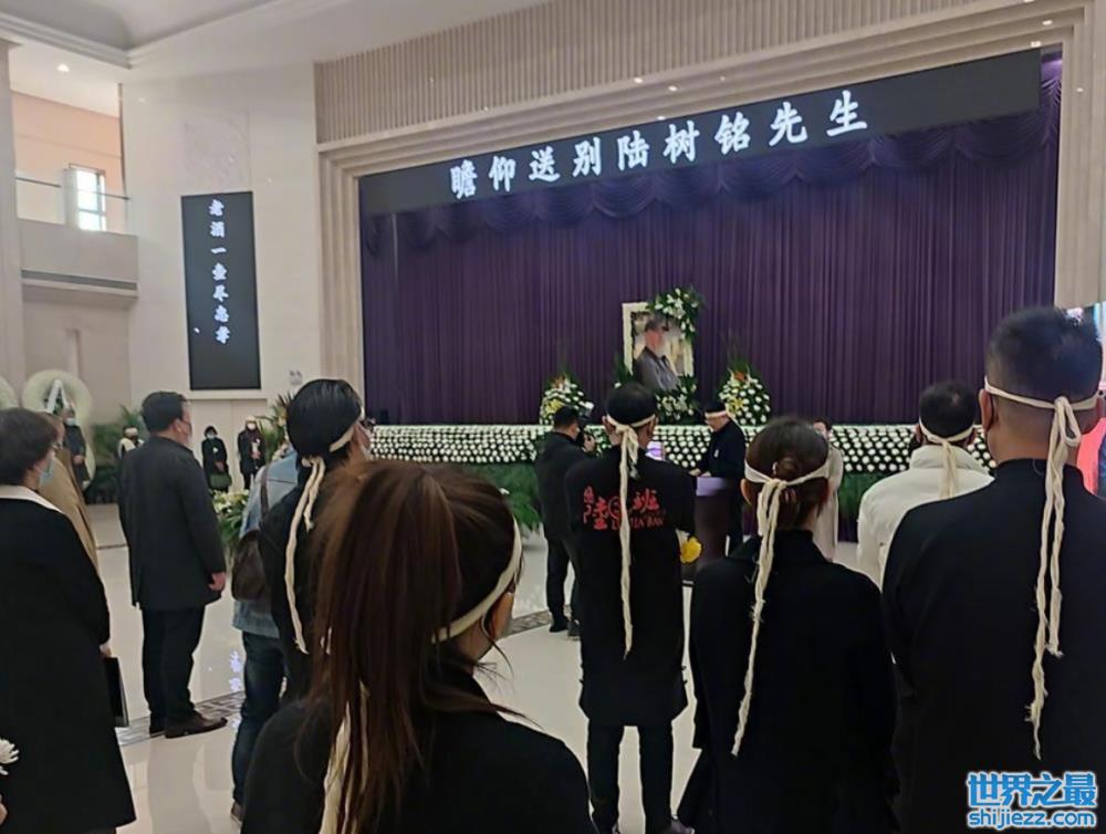 11月3日,知名演员陆树铭的追悼会在西安殡仪馆的咸宁厅举办,从仪式现场拍摄的视频来看,陆树铭的家人为其举办了一场相当体面的葬礼,偌大的厅堂内气氛肃穆,摆放着高洁素雅的白花,陆树铭的遗像摆放在大厅正中央,相框上也添加祭奠用的白花予以装饰。
