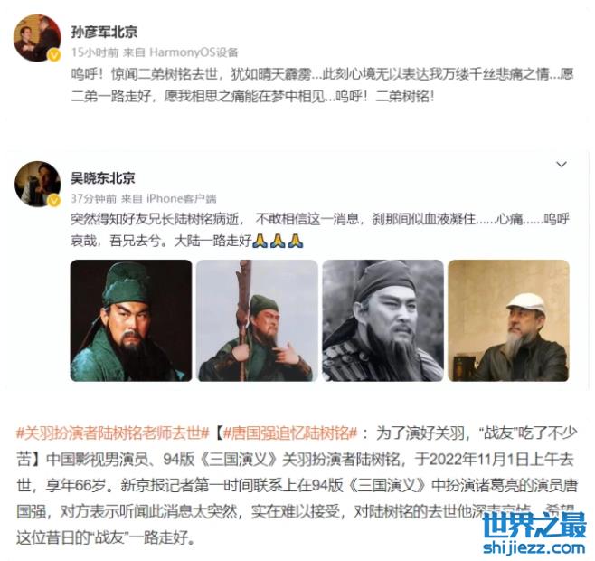 早年,陆树铭因为饰演《三国演义》中的“关羽”被大家熟知,在得知其去世噩耗之后,《三国演义》中的多位老演员纷纷发文表示哀悼。