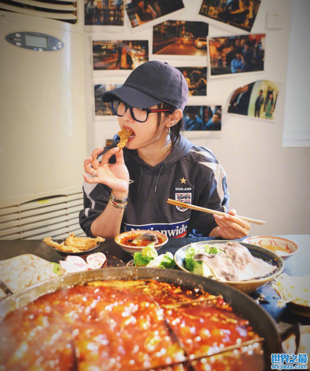 从照片中可以清楚地看到白百何桌面上摆着一大堆食物,好像怎么吃都不怕胖,隔着屏幕都能感觉到红油火锅热气腾腾,看起来超有食欲。