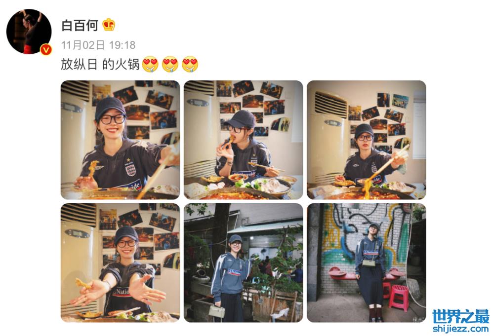 近日,白百何在个人社交平台晒出一组火锅随拍,配文说“放纵日的火锅”。