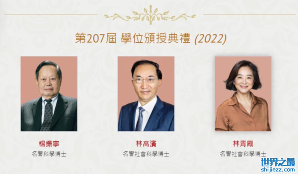 11月2日,香港大学为3位杰出人士——物理学家杨振宁、企业家林高演以及作家林青霞颁授名誉博士学位,其中林青霞被授予社会科学博士,以表彰她在艺术和文化方面的贡献。