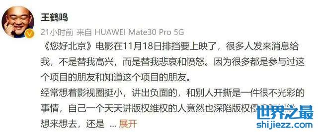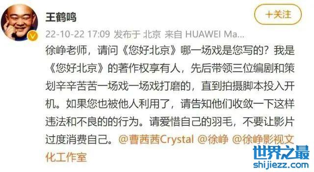 一位叫王鹤鸣的演员公开发长文,痛斥徐峥冒用编剧署名,明明一个字没动,偏偏在电影节上把编剧名字换成自己,