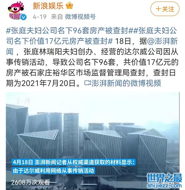之前张庭夫妇因为涉及传销,名下价值十几个亿的96套房产被查封,