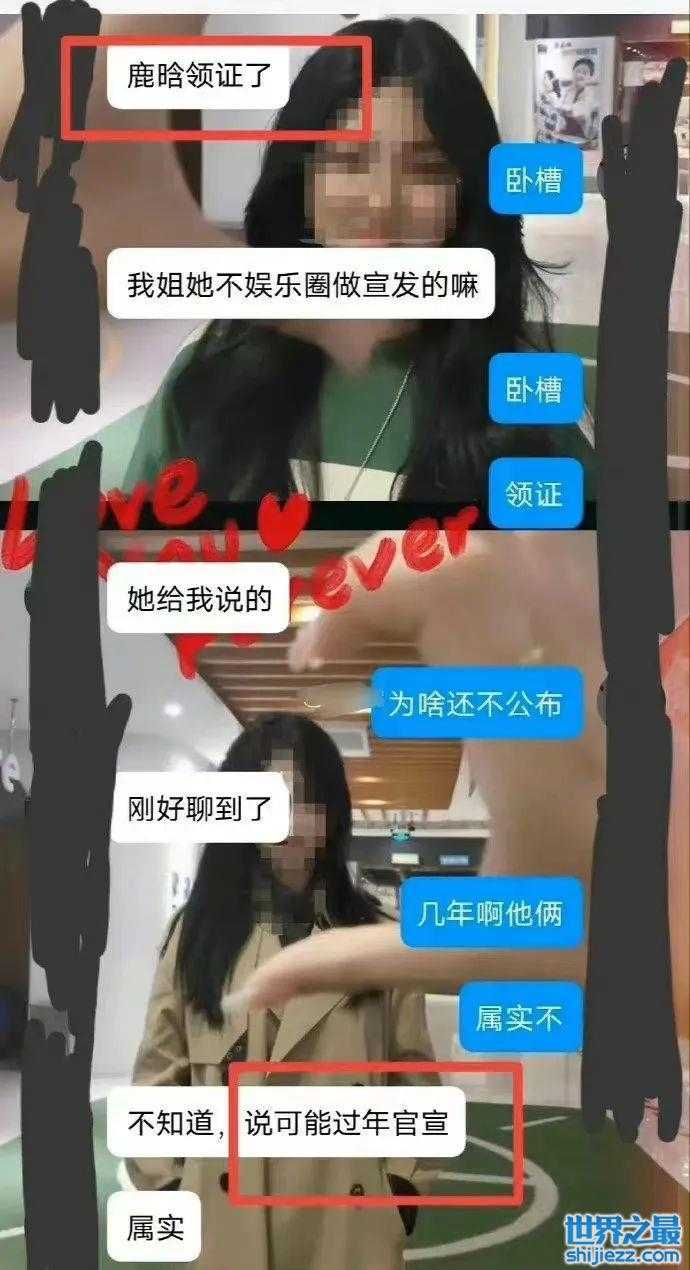 11月4日,一张聊天记录在网上疯传,引起网友的热议。从聊天内容来看,一个网友称自己的姐姐在娱乐圈做宣发,透露鹿晗领证了,可能过年就会官宣。