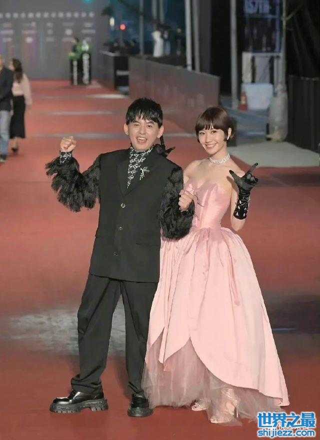 可能是想凹个甜美小公主的风格,结果却秒变千禧年非主流影楼风写真。和旁边同样穿得繁复无比的黄子佼站在一起,以为在参加什么城镇大联欢……