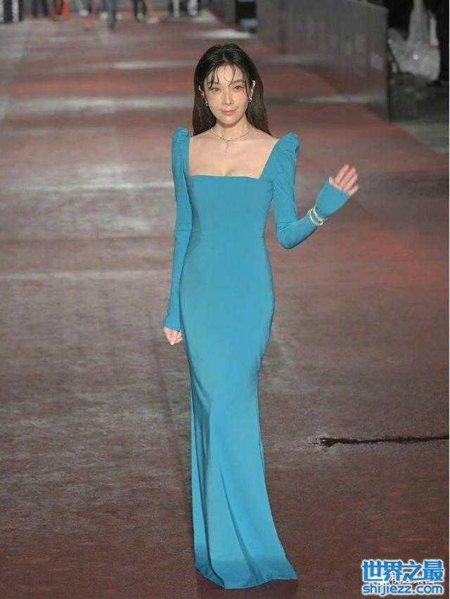 如果说上面两位的红毯秀,还只是礼服选择的不合适,那么一身蓝裙走上红毯的蔡淑臻,真的以为是在和万圣节应景。