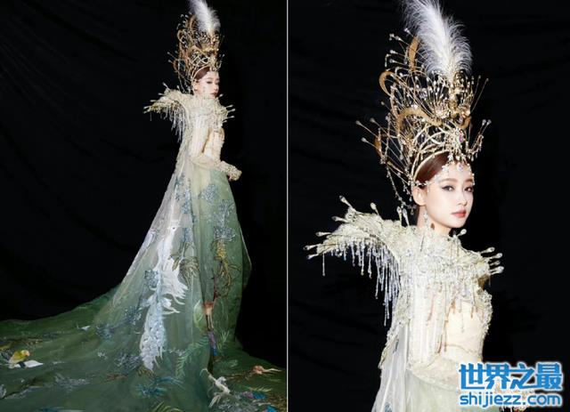 当日孙怡着一袭金色蝉翼蕾丝长裙,头上还有羽毛进行点缀,但不得不说这华丽的头饰看起来应该很重,可这对于孙怡的美丽又是另一份加成。