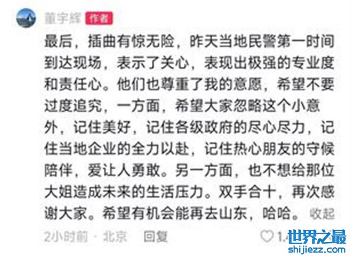 面对如此突发事件,董宇辉与该女子达成和解,并在直播间给大家报了平安,还表示希望不要过度追究,让大家能忽略这个小意外,不要给这个女子的生活带去太多压力。