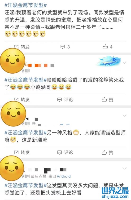 也正正由于现场没有太多的流量明星以及一线大咖,反而主持人汪涵和朱迅成为了晚会的最大看点,估计连芒果台也没有想到,冲上热搜第一位的竟然会是汪涵的发型吧。