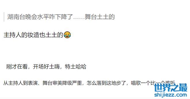 看完整场晚会,网友们不禁感叹——芒果台的晚会水平怎么下降了那么多,只能整个气氛就是又土又嗨。