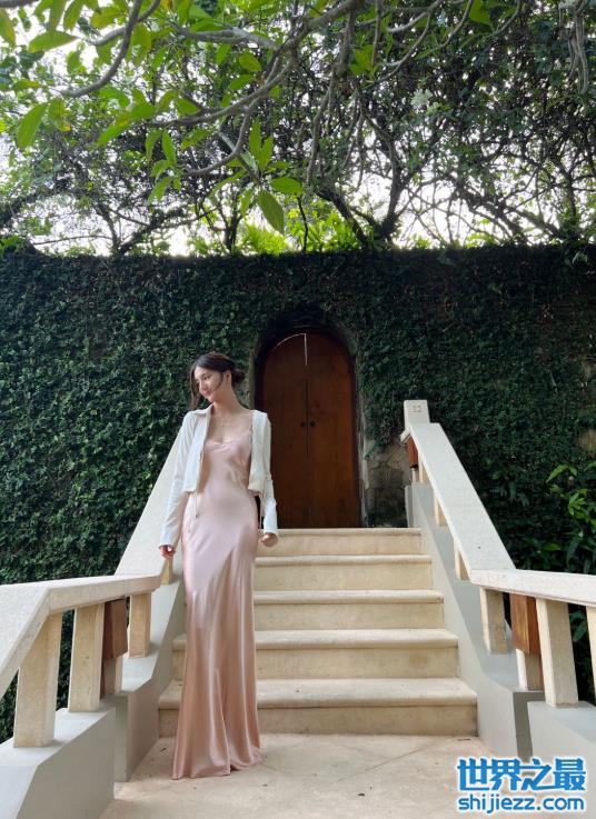 只见她身穿一件裸粉色缎面长裙,挽起头发美艳得不可方物,抹胸的设计能够凸显其傲人的上围和蝴蝶骨,与此同时,收腰部分能看得出吴千语并没有刻意身材管理,胯显得有些大,翘臀格外引人注目。