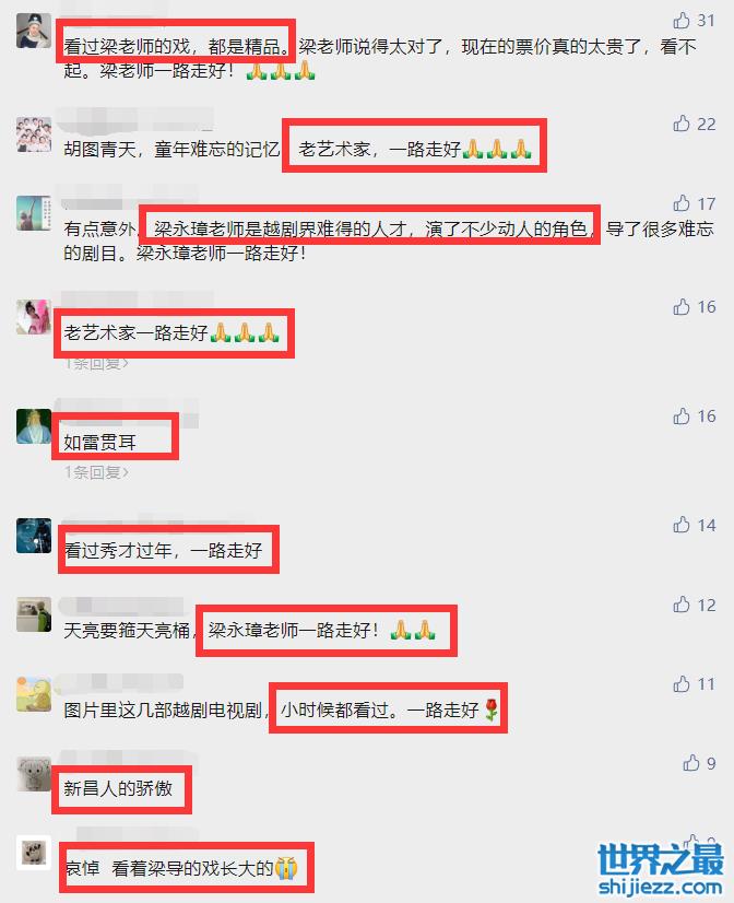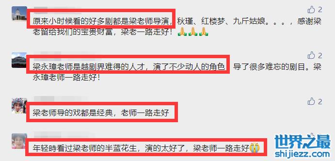在得知梁永璋老师去世的噩耗后,学生、好友、粉丝纷纷悼念,大家不舍他的离去,也怀念着他的那些经典作品,仿佛梁永璋老师从未离开过一样,也有网友留言说“梁永璋是值得尊敬和写入教科书的人”“是越剧界难得的人才”,也都希望他一路走好。