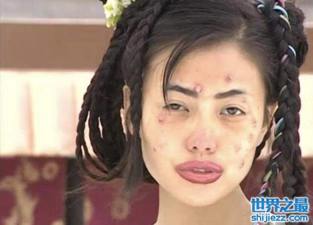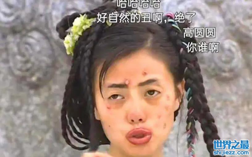 她在剧里有过一个奇丑无比的扮相,一脸的红色脓包、丑陋的香肠嘴再加上耷拉下垂的眼皮,完全无法将这个模样与平时的高圆圆联系在一起。
