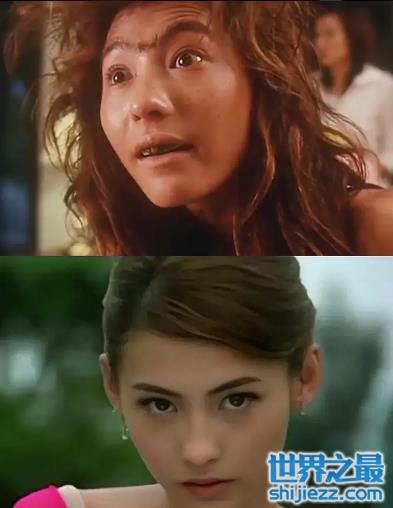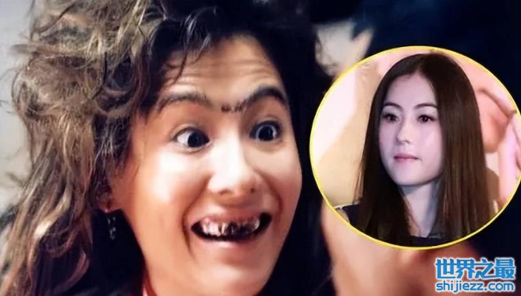 当时她出场时丑陋得令人发指,连成一线的囧眉、一口黒烂的门牙、乱糟糟的头发,让人看了都直言张柏芝扮丑太拼了。