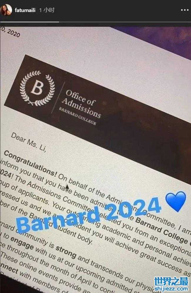 出生于2002年的法图麦,今年20岁了,2020年,法图麦在社交平台上晒出自己的录取通知书,眼尖的网友们发现这所学校是美国的一所顶尖的学院——巴纳德学院。