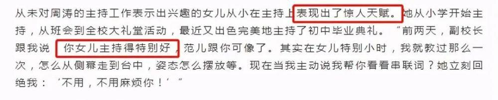 说到女儿小香香继承了自己的主持天赋,从小就开始主持,还主持了初中毕业典礼,校长还夸赞主持的范儿和她很像。