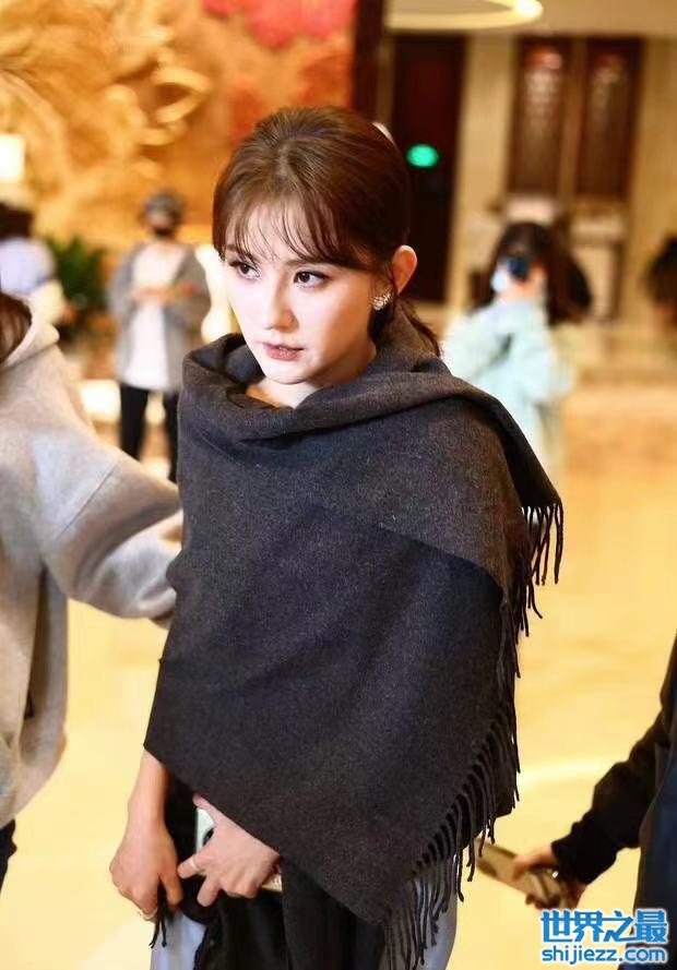 路透图中,热依扎还搭了一块灰色的披肩御寒,面容状态也很不错。