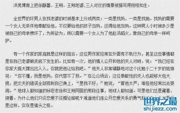 据洪晃描述,徐静蕾与王朔妻子沈旭佳对峙:“我已经在你家大摇大摆出出入入,你就把他让给我吧”。