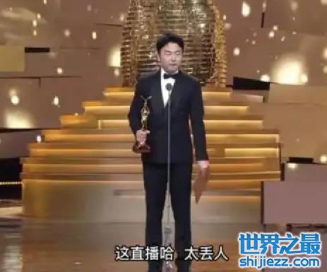 他拿着话筒说到“其实我们演员很不容易,为了塑造一个角色,我们必须花费大量的时间钻研角色,要忘记自己才能化他为我。