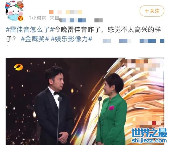 首先是雷佳音当晚和张凯丽老师一起颁奖,但是他在舞台上不时低着头,不时黑着一张脸,给人一种他心情不好的感觉,再加上他和张凯丽的有些对话,总觉得雷佳音有点怼人的语气,一度让他的不开心冲上了热搜榜。
