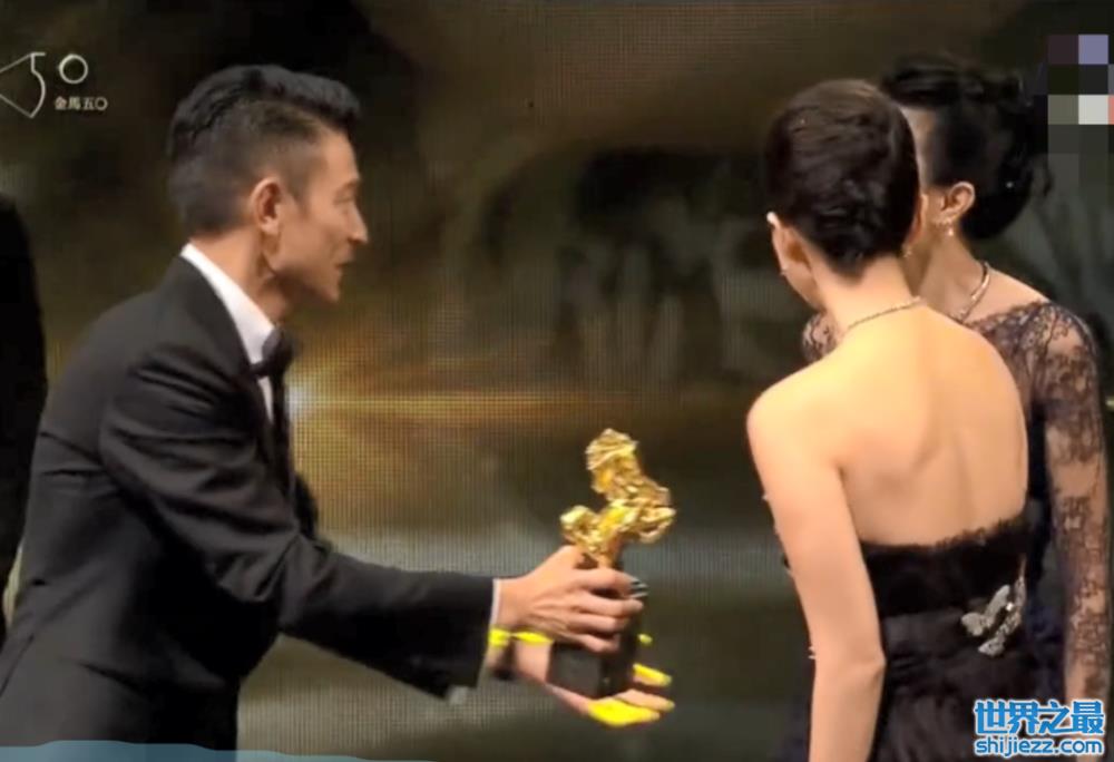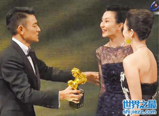 奖杯好像成了一个烫手山芋,刘德华执意递出去,张曼玉坚持不接,而最想拿到奖杯的章子怡却尬在现场。最终还是刘德华将奖杯颁给了她,才没让这场尴尬继续弥漫。