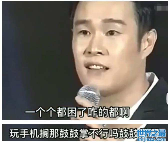 他垮起脸先向着台下大声吼了一声,后面用词也带着怒意:“吓死你们都,咋的一个个都困了咋地,都在玩手机不知道鼓鼓掌吗”。