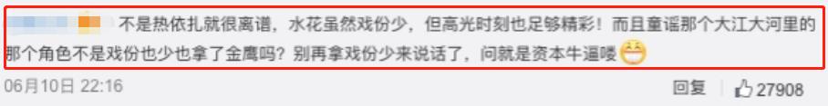 这边很多网友对殷桃夸赞不已,那边仍然要迪丽热巴拿出来“打脸”,可见那次的获奖对热巴来说,是负面远大于正面的,这种德不配位的头衔,对演员本身来说,更是一种反噬。