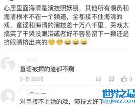 在获奖后的第二年,童瑶和海清共同主演《心居》,演技被海清吊打,路人缘、口碑什么的就更差了,可以说,如果没得奖,童瑶稳打稳扎,绝对是观众眼中很讨喜的女演员了。