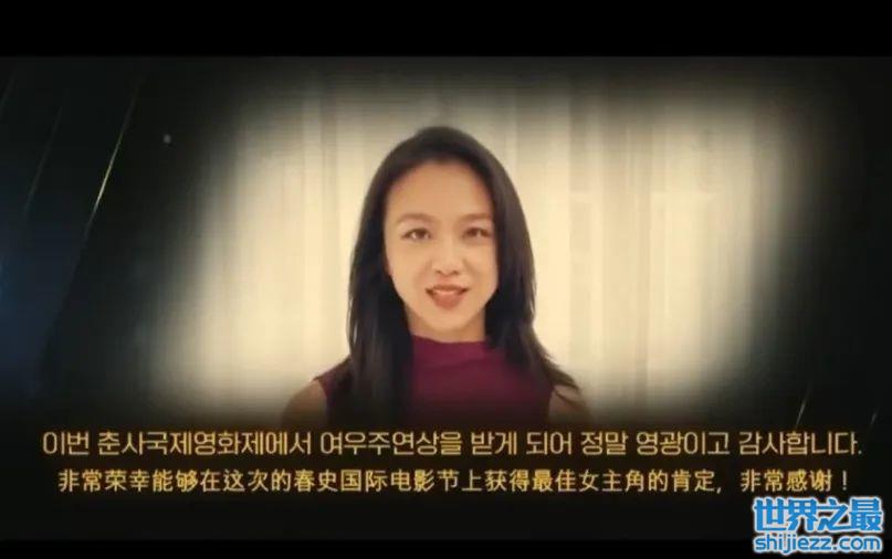 韩国春史奖,汤唯喜提影后,但由于个人原因没能到达现场,她只能通过录制视频向韩国国观众以及颁奖组委会表示了感谢。