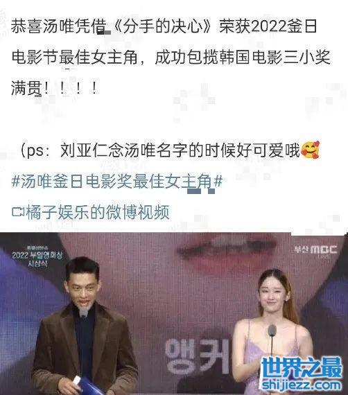 今年,汤唯已经凭借《分手的决心》拿到了三大奖项的影后,可见这部影片真的给了汤唯获奖的实力与勇气,使得她能够在韩国影坛中大放异彩。