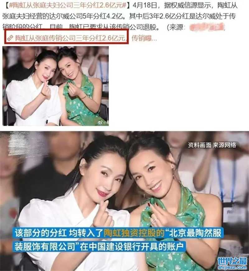 最初被曝光的达尔威传销公司就有陶虹控股,即使是张庭夫妇退出之后,她也还是里面的大股东,被曝出五年获得分红4.2亿元,后来迫于舆论压力,才退出了该公司。