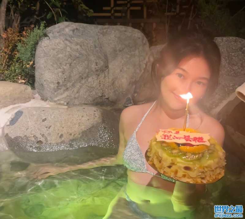 晚晚穿泳衣坐水池里庆生!泡水中皮肤白嫩泛红,手上举一个大蛋糕 ...